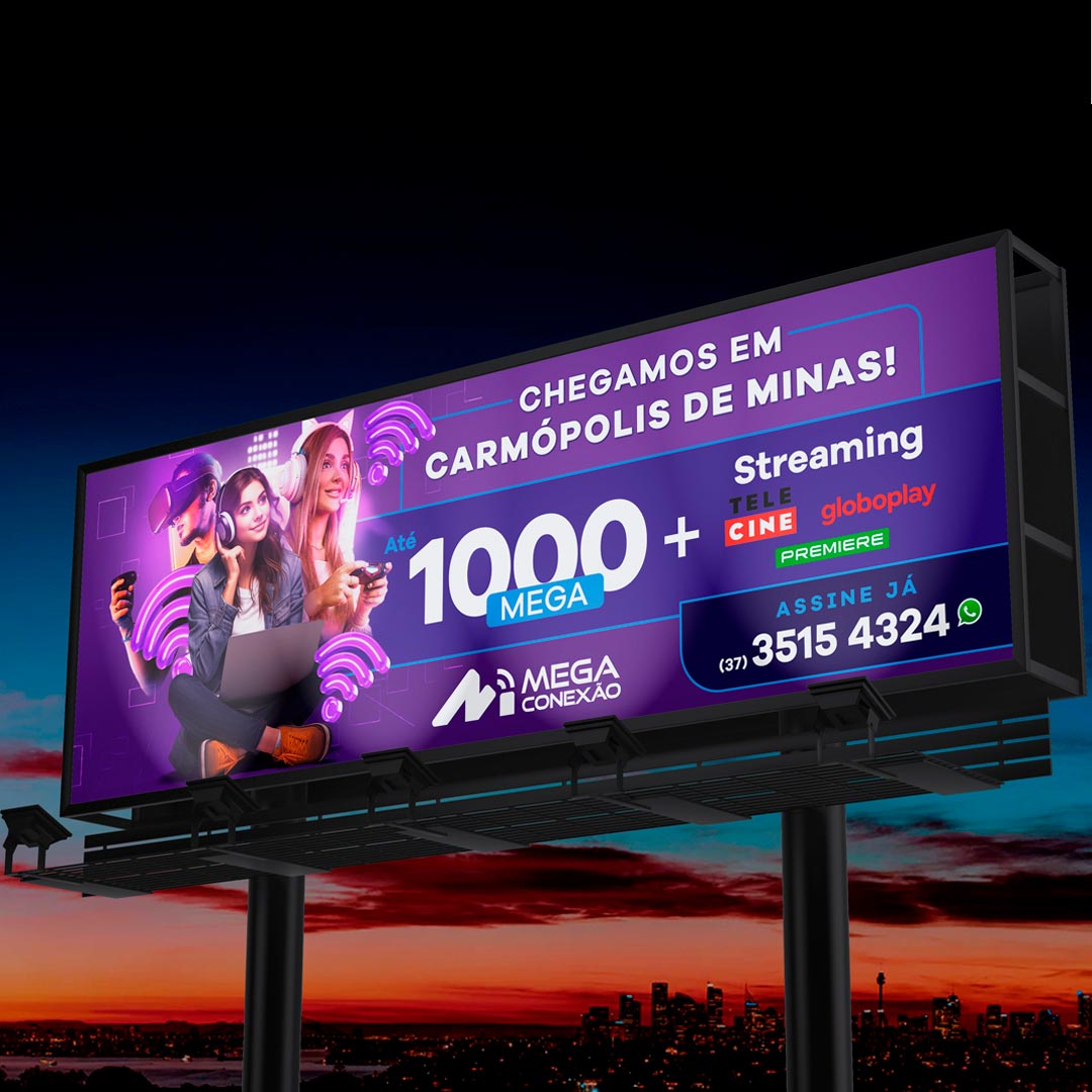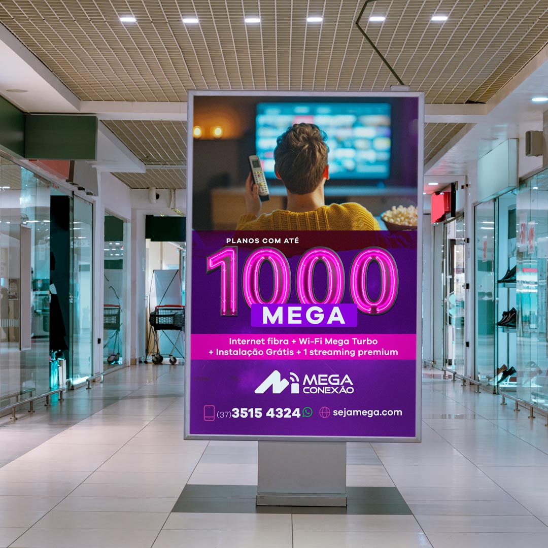Com materiais de comunicação padronizados e estrategicamente posicionados, a Mega Conexão conquistou reconhecimento imediato na região. Cada peça foi pensada para gerar lembrança e atrair novos clientes.