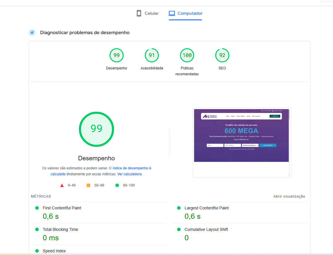 O Google avalia vários aspectos técnicos do site, incluindo tempo de resposta do servidor, otimização de imagens, entre outros fatores que afetam a experiência do usuário. Com base nessa análise, o PageSpeed Insights atribui uma pontuação de 0 a 100, sendo que notas mais altas indicam um melhor desempenho e experiência de navegação.