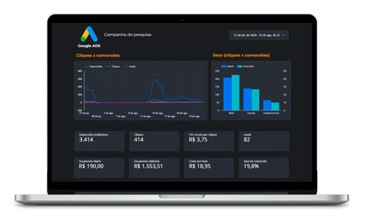 Implantamos um painel completo com os principais dados das campanhas de marketing. Assim a Mega Conexão toma decisões assertivas, aloca investimentos nos canais que geram mais resultados e monitora o crescimento com precisão.